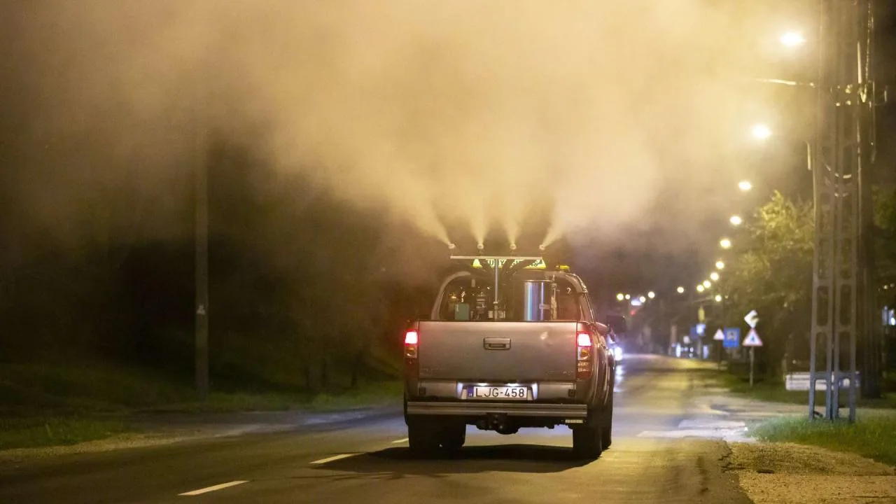 A héten a kifejlett rovarokat gyérítik a szakemberek az esti, éjszakai órákban, platós gépjárműre rögzített permetezővel juttatják ki a vegyszert a környezetbe 45 település lakott területein.